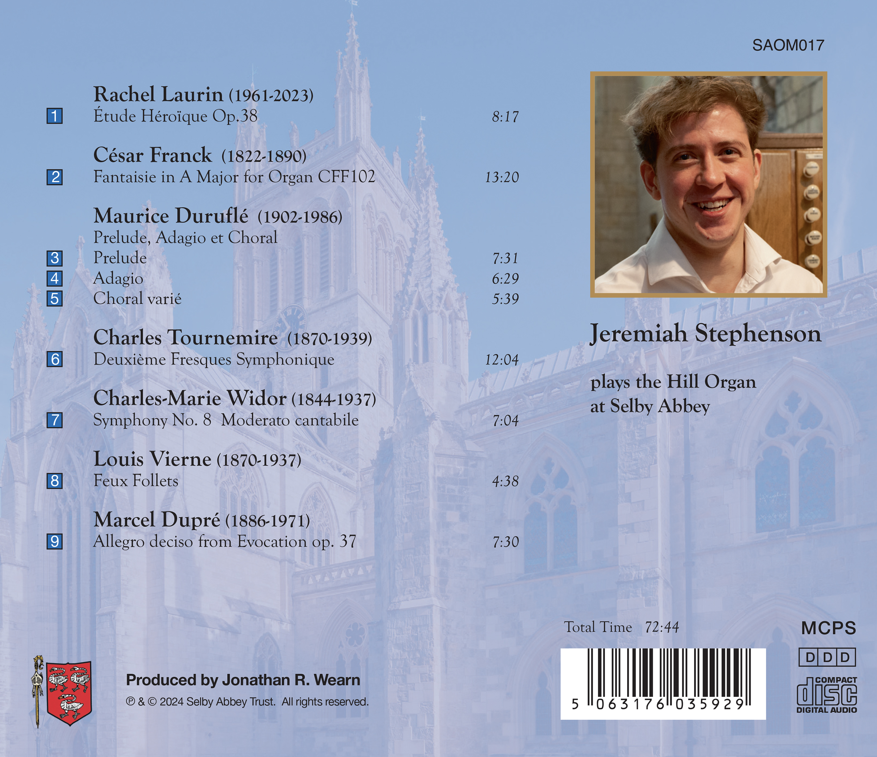 These high-quality, digital recordings of organ music have been made live at Selby Abbey on the restored Hill Organ and showcase the performances of outstanding organists.